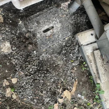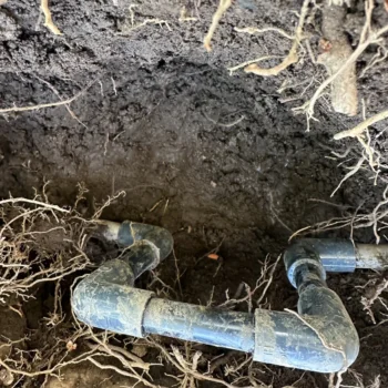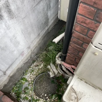 敷地内に樹木などを植えていると、排水桝と排水管の繋ぎ目から根が侵入し、流れを塞ぐようになります。木の根の撤去と管内洗浄を行います。