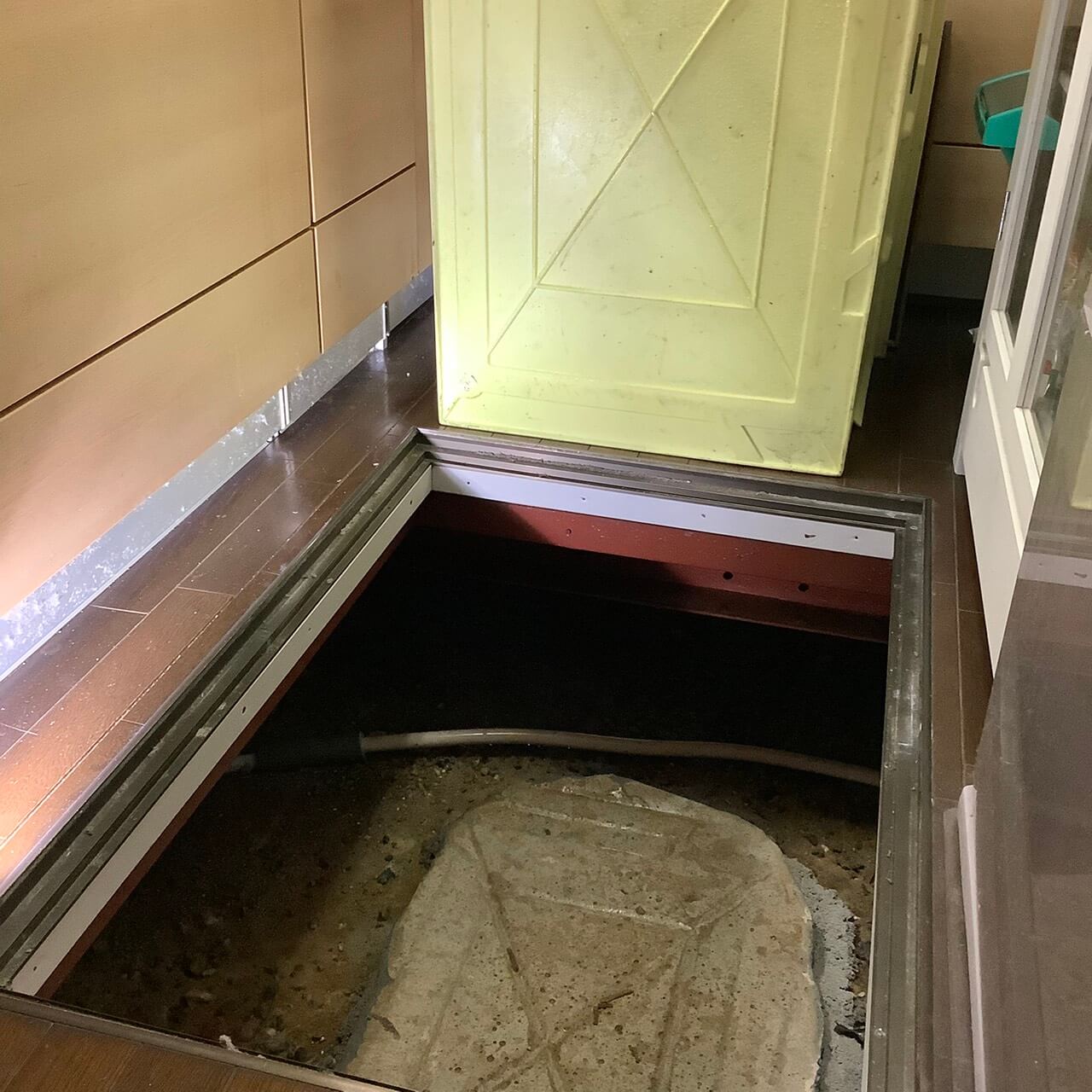 洗面所の下から急にシャーという音がして、最初は気のせいかなと思ったのですが、だんだん音が大きくなって怖くなり、連絡しました。