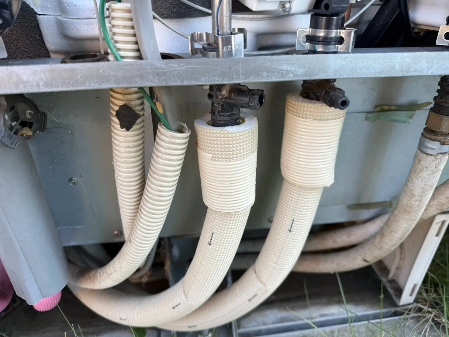 外置き給湯器は循環ホースが劣化しやすく、漏水リスクが高い箇所です。