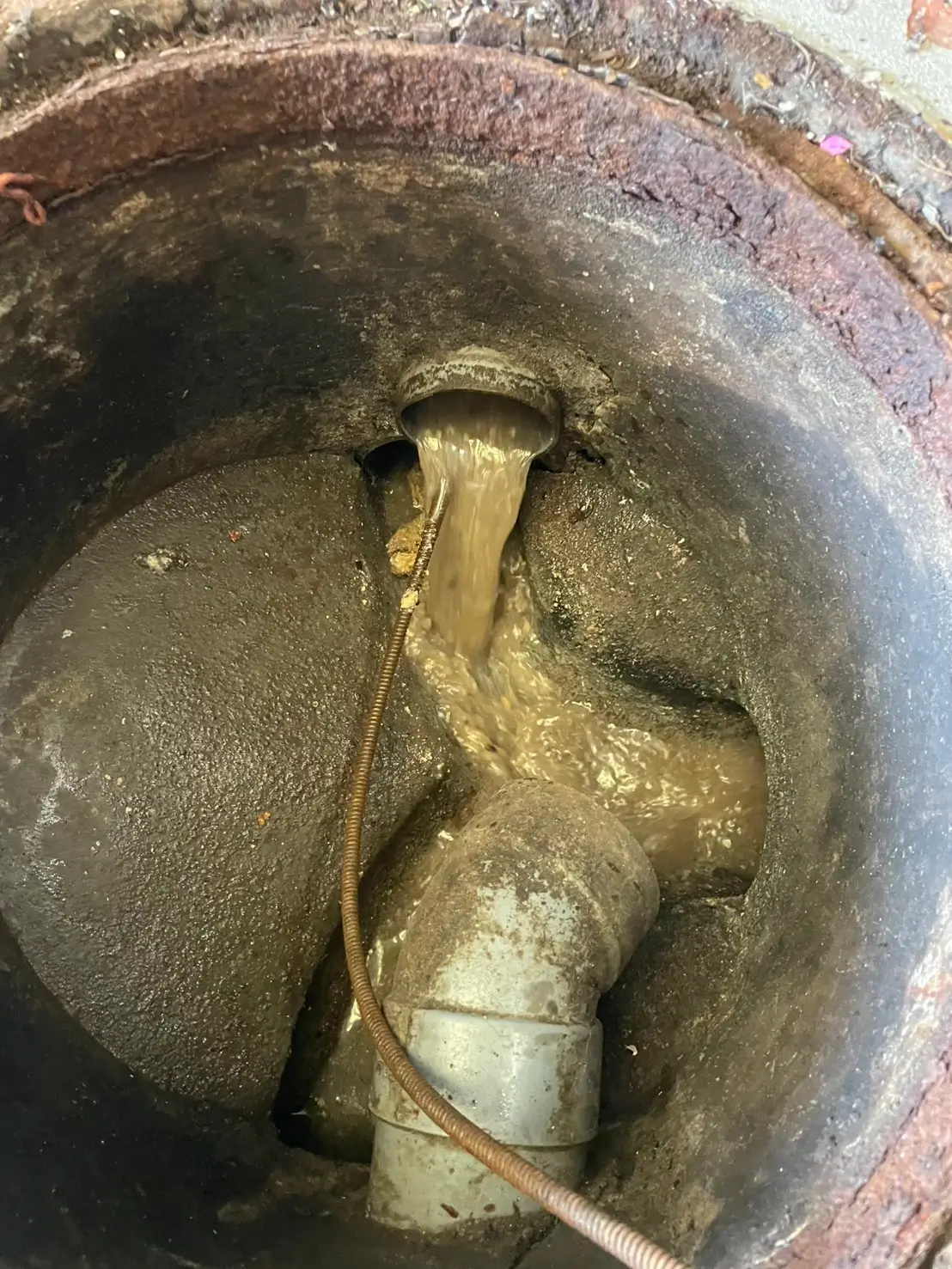現場にて確認したところ、排水管内部に汚れやスケールの蓄積があり、詰まりによって逆流・水漏れが発生しておりました。