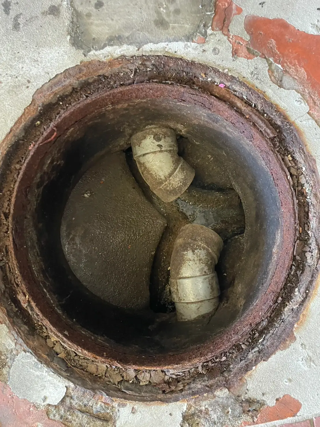 現場にて確認したところ、排水管内部に汚れやスケールの蓄積があり、詰まりによって逆流・水漏れが発生しておりました。
