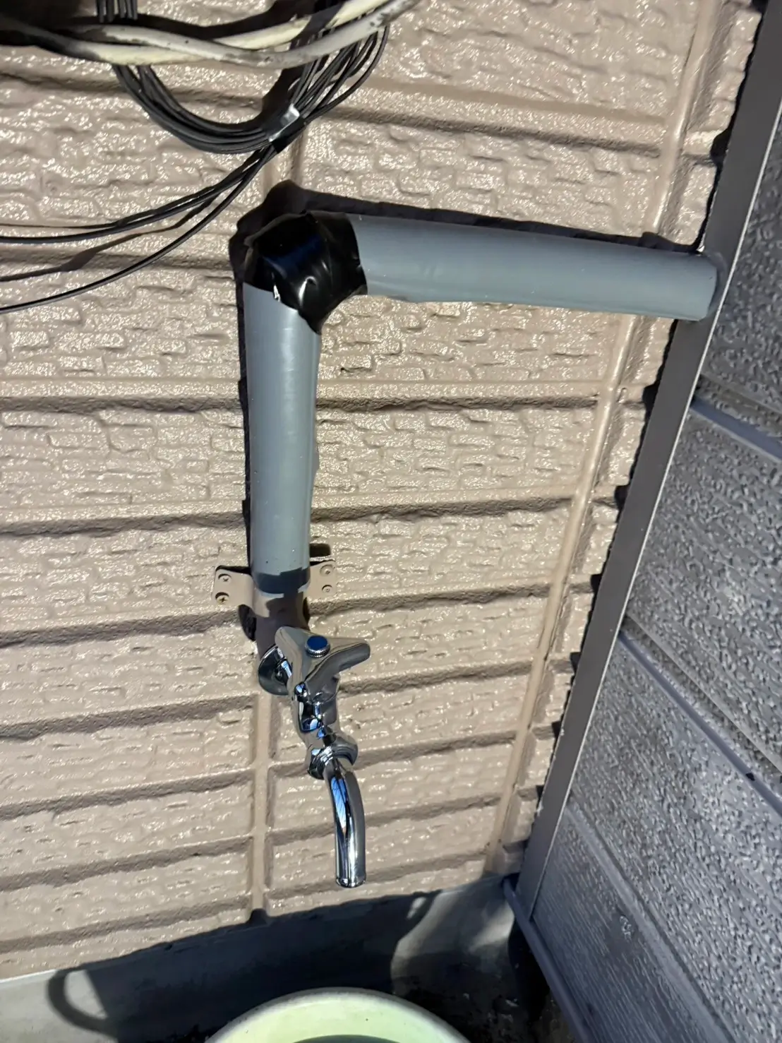 お伺いした際、屋外の給水管が経年劣化および気温変化による影響で破裂し、水が噴き出している状態を確認いたしました。